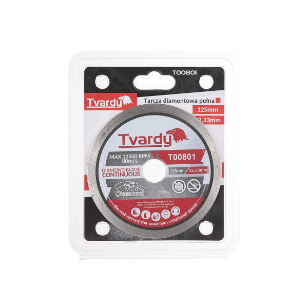 Професійний алмазний диск від Tvardy. Повнопрофільний диск призначений для різання твердих будівельних матеріалів, таких як керамограніт, мармур, черепиця, граніт, пісковик, кварц. Алмазний диск діаметром 125 мм та товщиною 1,2 мм. Має алмазне покриття висотою 7,5 мм та товщиною 1,6 мм.